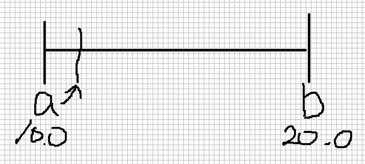 b를 넘어서 a가 나아가게됩니다. 즉 1초가 지나게되면 Vector3의 x는 20.0을 넘게됩니다.