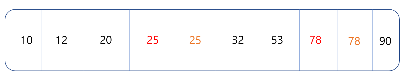 일반적인 stable_sort(안정정렬)은 다음과 같이 정렬이 완성됩니다.
